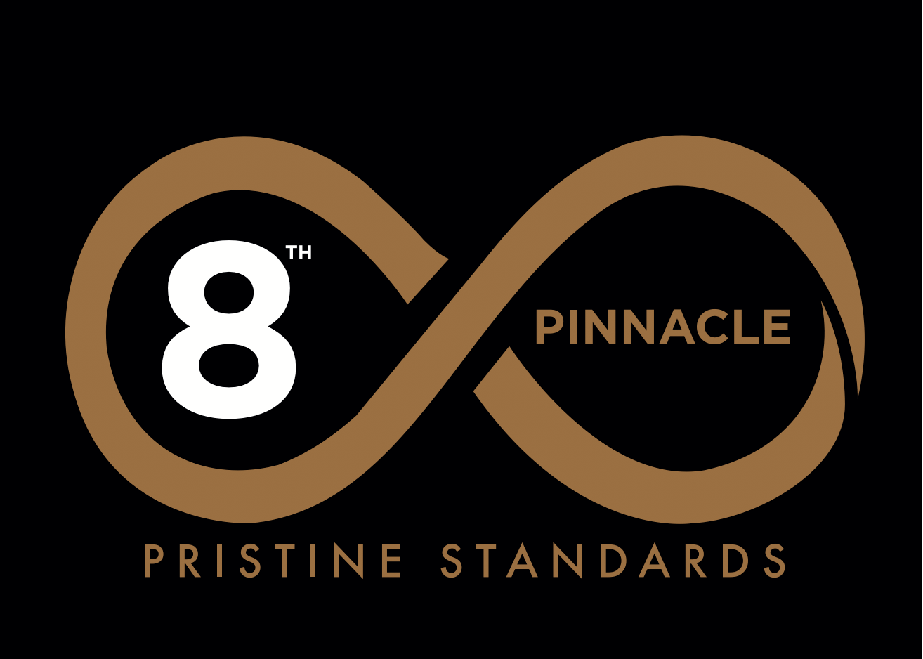 Premium brand identity featuring a bold gold infinity logo. Pristine Standards.